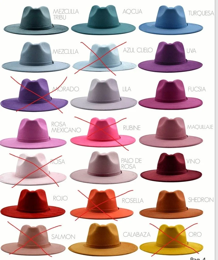 Please note that not every style and colour are available at all times. If I do not have a particular hat or colour in stock, I will need to order the hat with my next hat order.